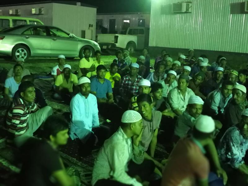 نفذ قسم الجاليات بالمكتب التعاوني بمحافظة فيفاء اللقاء السادس للجالية البنقالية مساء هذا اليوم الأحد 15/3/1439هـ في سكن عمال البلدية بجهة حقو فيفاء بدٲ البرنامج بعد صلاة المغرب بمحاضره للداعية / نور العالم التابع للمكتب التعاوني بالملحا وكانت بعنوان شرح الأسماء والصفات وقد امتدت المحاضرة إلى الساعة الثامنة والنصف و في الختام طرح بعض الأسئلة عن ما شرحه في المحاضرة وبعد صلاة العشاء تم تحضير وجبة العشاء الذي أعده قسم الجاليات للحضور وقد كان الحضور حوالي تسعون شخصاً.