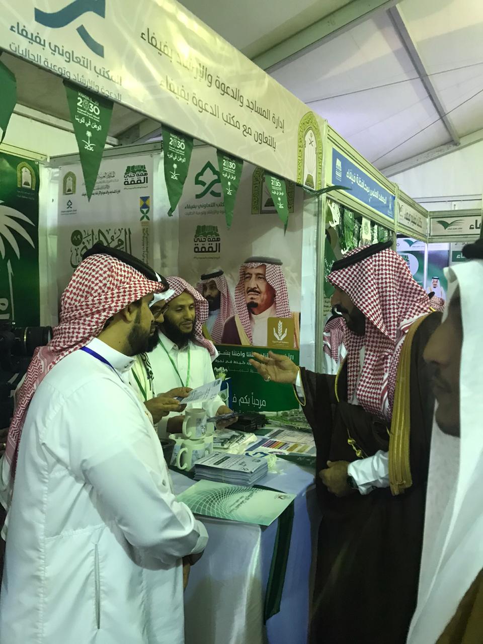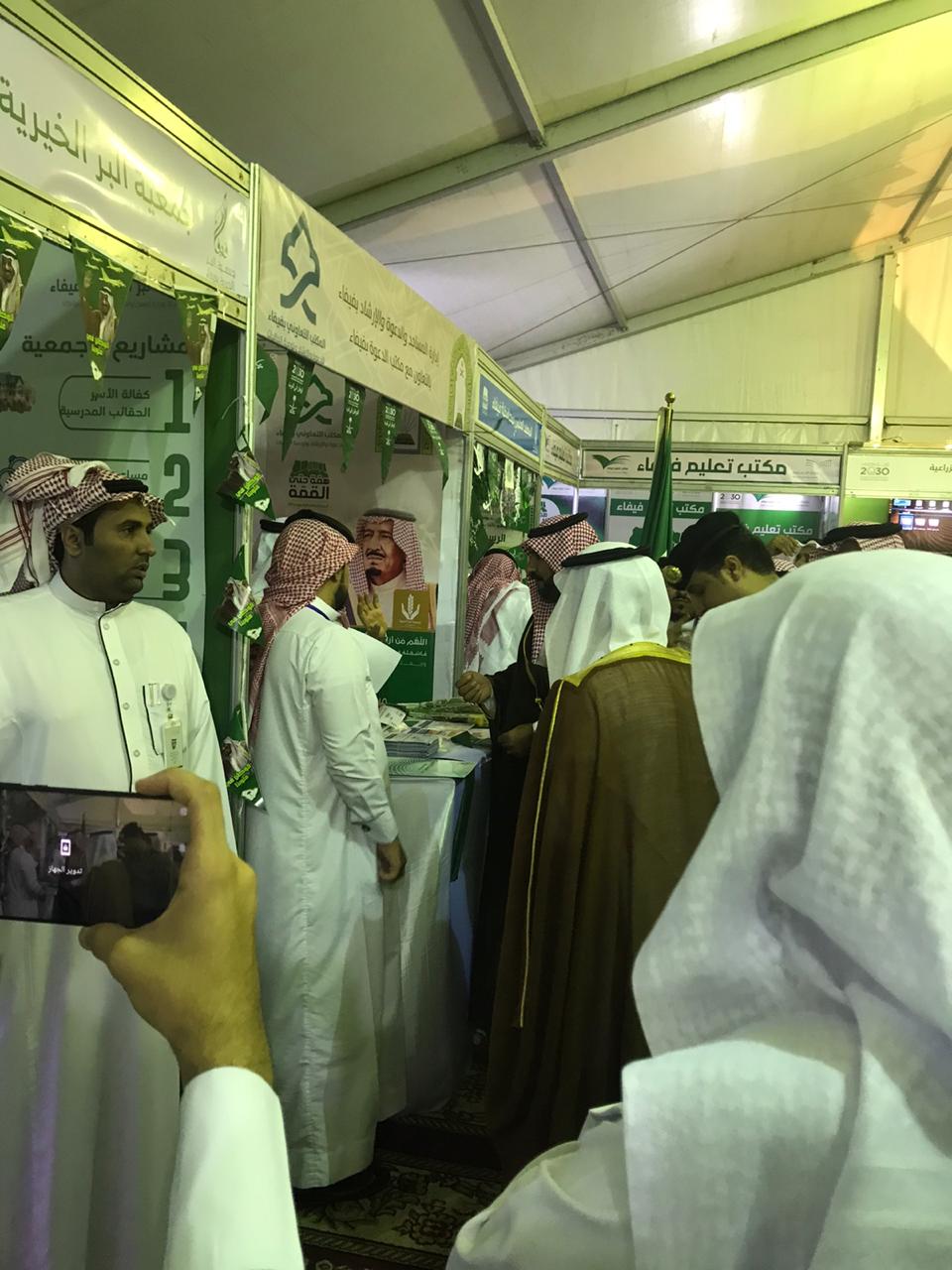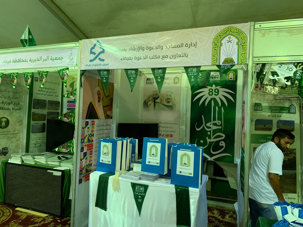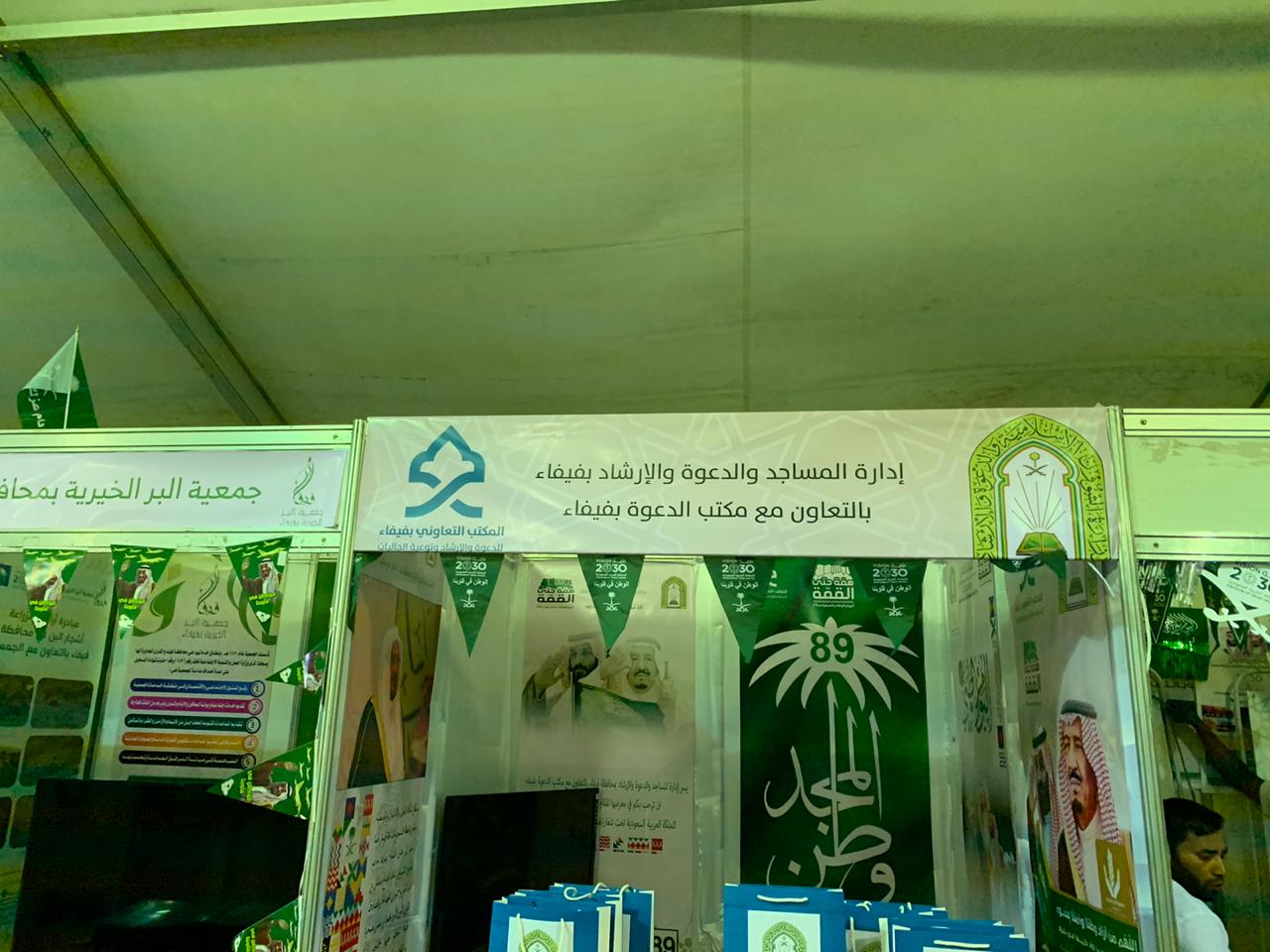 شاركت إدارة المساجد والدعوة والإرشاد بالتعاون مع مكتب الدعوة بفيفاء ضمن معرض حفل اليوم الوطني السعودي التاسع والثمانون لمحافظة فيفاء ببعض من العروض والمنشورات والتوزيعات التي زرعت البهجة على زوار المعرض وقد أثنى محافظ محافظة فيفاء سفر بن سعيد الشهراني على الجهود المبذولة من تلك الجهتين سائلين الله - العلي القدير - أن يديم الله على هذه البلاد أمنها واستقرارها تحت رعاية خادم الحرمين الشريفين، وولي عهده الأمين