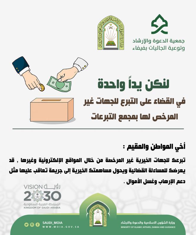 لنكن يداً واحدة في القضاء على التبرع للجهات غير المرخص لها