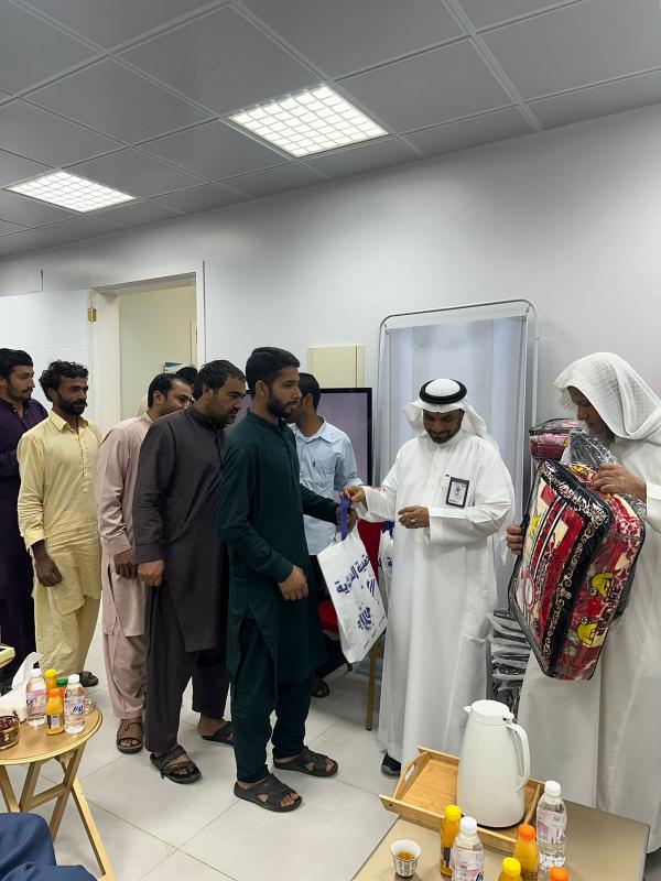 دشن محافظ محافظة فيفاء الأستاذ / محمد بن حاسر حكمي وبحضور رئيس جمعية الدعوة بفيفاء الشيخ / يحيى بن حسن الفيفي ومدير قسم الجاليات الأستاذ / يحيى بن إبراهيم الفيفي الحقيبة الشتوية السنوية لقسم الجاليات بجمعية الدعوة بفيفاء اليوم الاثنين الموافق : 13/5/1445هـ الذي يأتي دعماً من منصة إحسان الخيرية لعدد 1000 حقيبة مكونة من (بطانية + جاكيت + بلوفر + شال + قبعة + شراب + قفاز) .