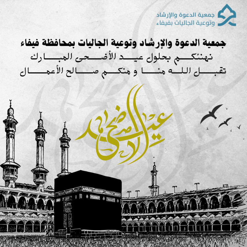 جمعية الدعوة والإرشاد وتوعية الجاليات بمحافظة فيفاء تهنئكم بحلول عيد الأضحى المبارك تقبل الله منا ومنكم صالح الأعمال