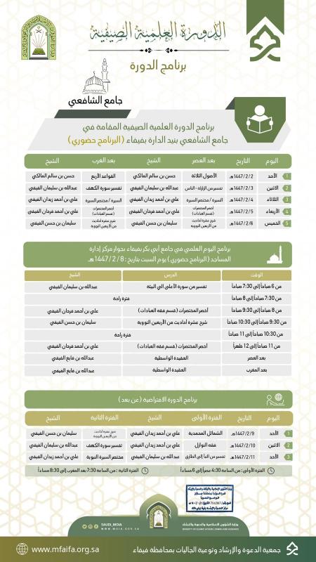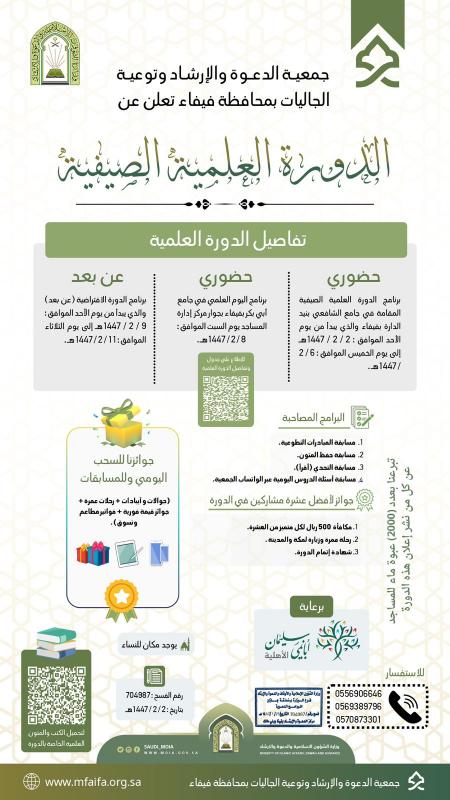 جمعية الدعوة بفيفاء تعلن عن الدورة العلمية الصيفية