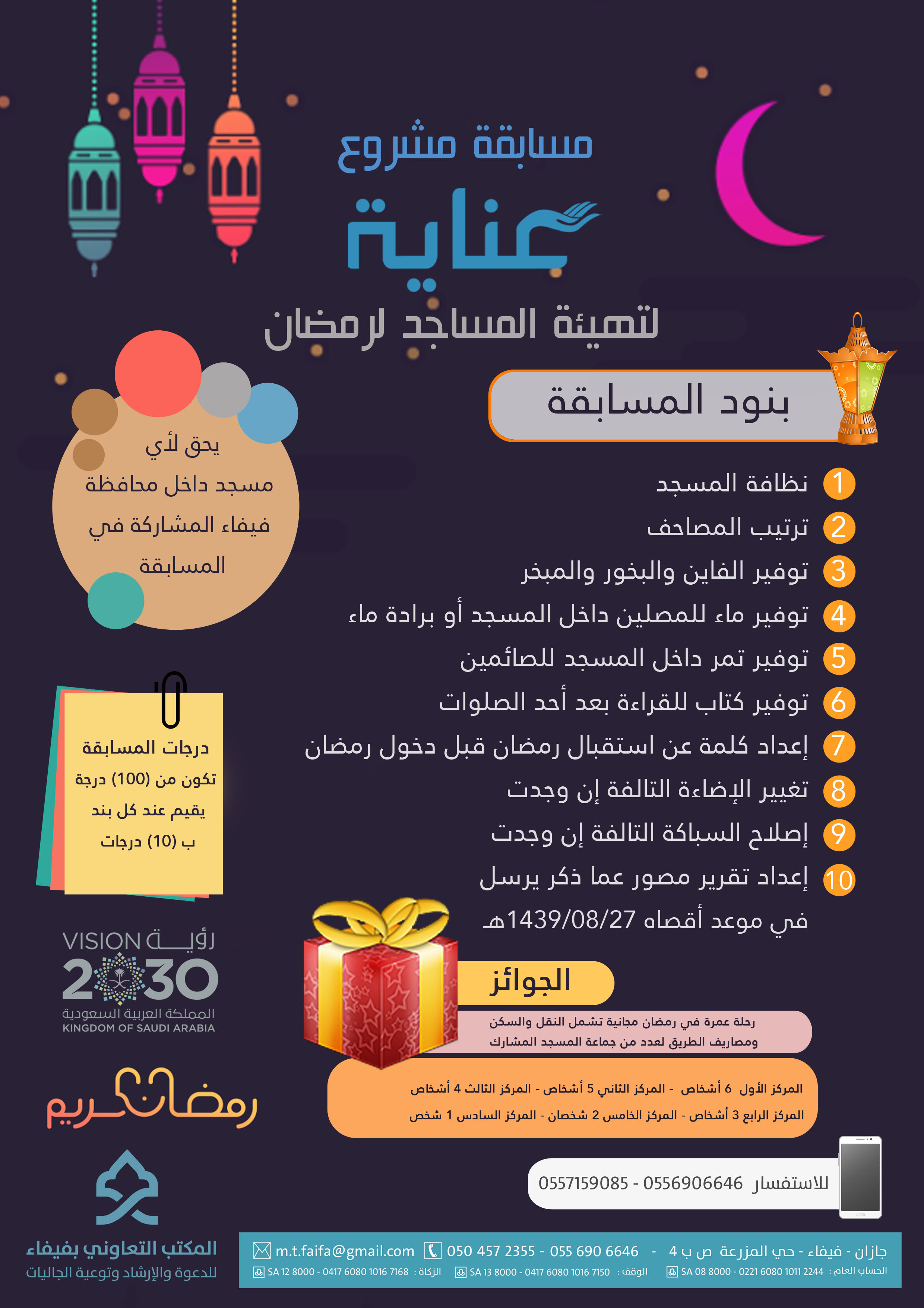 مسابقة مشروع عناية لتهيئة المساجد لرمضان