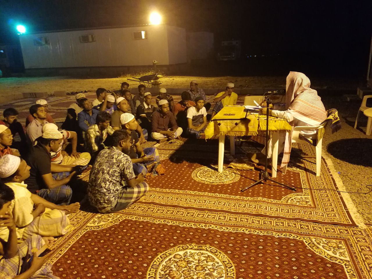 قسم الجاليات بالمكتب التعاوني بمحافظة فيفاء ينفذ اللقاء الخامس و العشرون للجالية البنقالية مساء هذا اليوم الأحد الموافق 23/07/1439هـ في سكن عمال البلدية بجهة حقو فيفاء بدٲ البرنامج بعد صلاة المغرب بمراجعه لحفظ التشهد والصلاة على النبي إلى صلاة العشاء وبعد الصلاة بدٲ الداعية نور العالم التابع للمكتب التعاوني بالملحا بإلقاء الدرس الذي كان بعنوان الإسراء والمعراج استمر في الدرس إلى الساعة التاسعة مساءً ثم تم تحضير وجبة العشاء الذي أعده قسم الجاليات لجميع الحضور هذا ونسٲل الله أن يتقبل من جميع العاملين في دعوة الجاليات ويجزي خير الجزاء جميع الداعمين لهذه البرامج المباركة