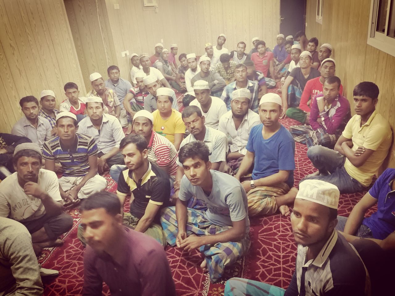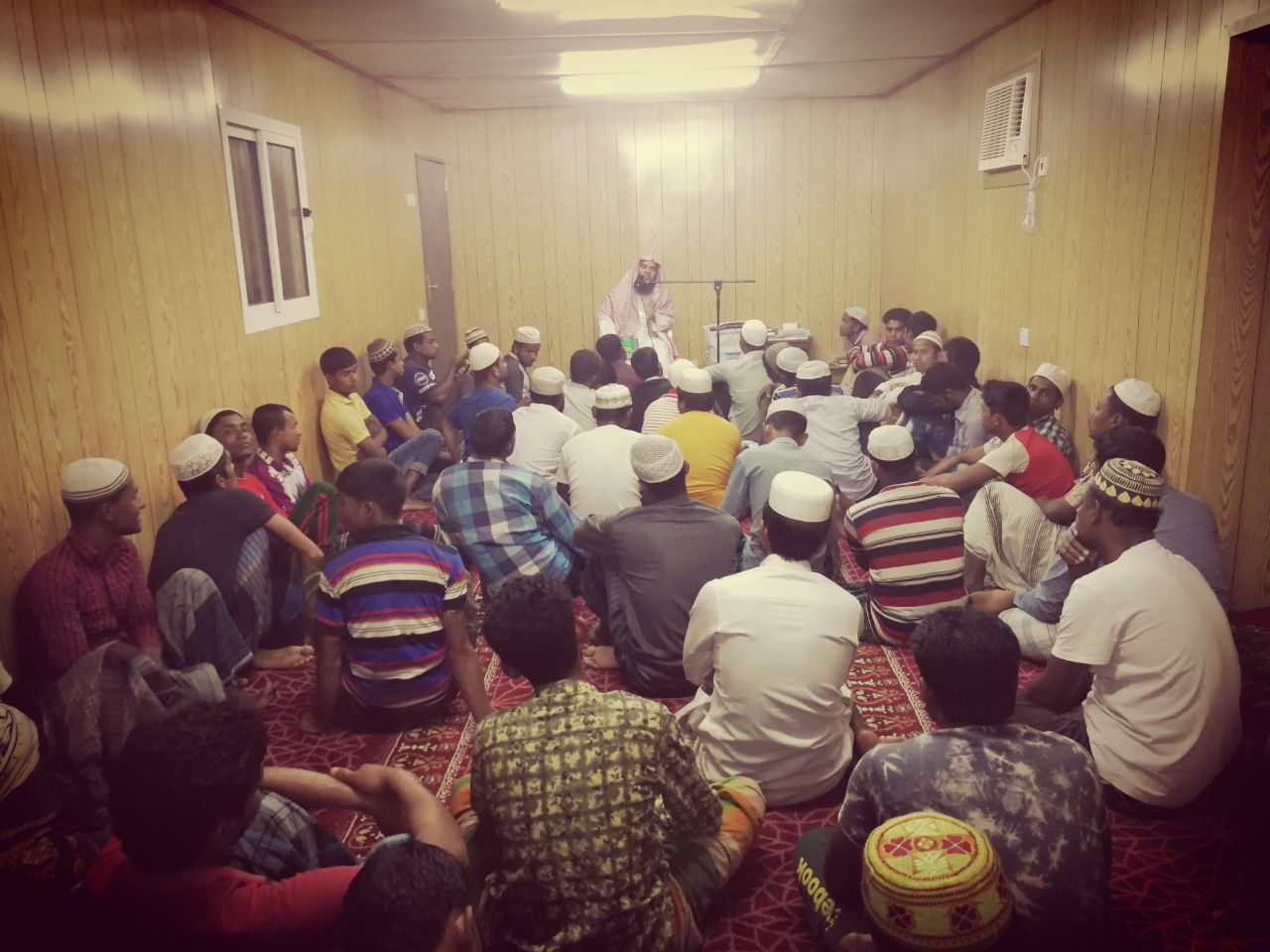 قسم الجاليات بالمكتب التعاوني بمحافظة فيفاء ينفذ اللقاء الثامن للجالية البنقالية مساء هذا اليوم الأحد 29/3/ 1439هـ في سكن عمال البلدية بجهة حقو فيفاء بدٲ البرنامج بعد صلاة المغرب بمحاضره للداعية / نور العالم التابع للمكتب التعاوني بالملحا وكانت بعنوان شروط قبول العمل وفضله وآدابه يوم الجمعة و في الختام طرح بعض الأسئلة عن ما شرحه الشيخ وتسليمهم الجوائز صلى الجميع صلاة العشاء ثم تم تحضير وجبة العشاء الذي أعده قسم الجاليات لجميع الحضور هذاونسٲل الله أن يتقبل من جميع العاملين في دعوة الجاليات ويجزي خير الجزاء جميع الداعمين لهذه البرامج المبارك وصلى الله وسلم على نبينا محمد.