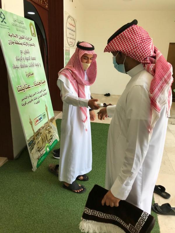 استقبلت جمعية الدعوة بفيفاء ولجنة التنمية الأهلية بفيفاء بالتعاون مع فرع وزارة الشؤون الإسلامية بجازان ومركز الدعوة بفيفاء الأسبوع الثالث للمصلين ضمن مبادرة مساجدنا عنايتنا بتنظيم دخول وخروج المصلين في جوامع ومساجد المحافظة واستقبال المصلين للتأكد من الإجراءات الوقائية حيث تم قياس درجة الحرارة وتوزيع الكمامات والتعقيم وتنظيم الصفوف وتوزيع المصلين في المواقع المخصصة داخل الجوامع وشوهد التزام المواطنين والمقيمين في فيفاء بالتعليمات الوقائية والاحترازية للحد من انتشار فيروس كورونا