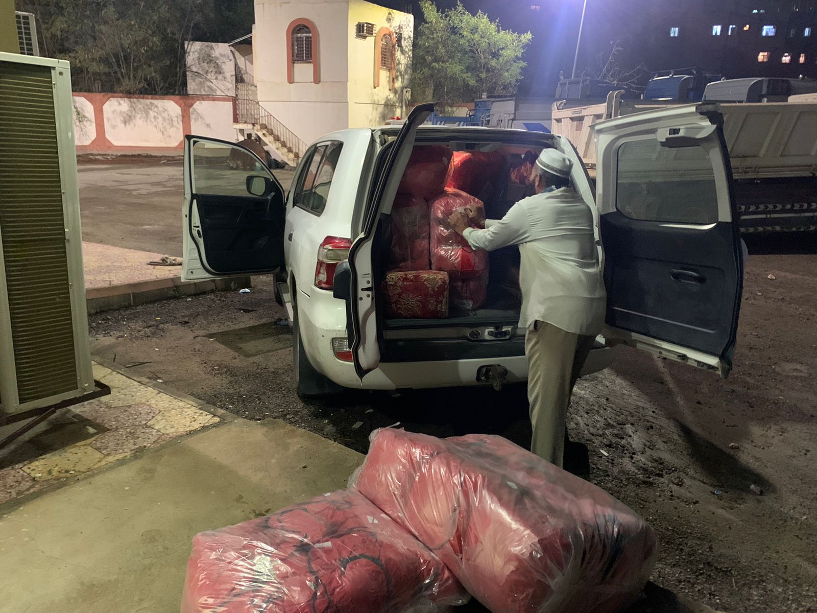 قسم الجاليات بجمعية الدعوة والإرشاد وتوعية الجاليات بمحافظة فيفاء ينفذ برنامج توزيع الحقيبة الشتوية الدفعة الأولى على العمال المتواجدين في جهات جبال فيفاء حيث تم صرف ( 500 ) حقيبة مكون من ( بجامة وبلوفر - جاكيت - قبعة - شراب - قفازات - شال ) وقد حرصنا على أن تكون الاستفادة من هذه الكسوة للعمال الذين يكون عملهم في ساعات الصباح الباكر أو في المساء مثل عمال الدوائر الحكومية والمؤسسات والشركات وكذلك العمالة اليمنية .