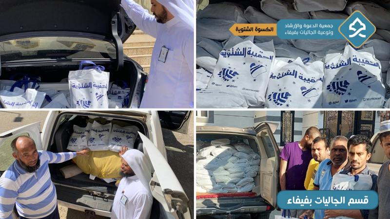 بدأ والحمد لله قسم الجاليات بجمعية الدعوة والإرشاد وتوعية الجاليات بمحافظة فيفاء بتنفيذ مشروع توزيع كسوة الشتاء للجاليات لعام 1444هـ للمتواجدين في جهات فيفاء ومنها حي المزرعة والعدوين ومروح ونيد الكتبة والعبسية, كما أنه يوجد فرقة من القسم للتوزيع في جهة النفيعة ونيد الدارة ونيد الضالع وجهة الخشعة