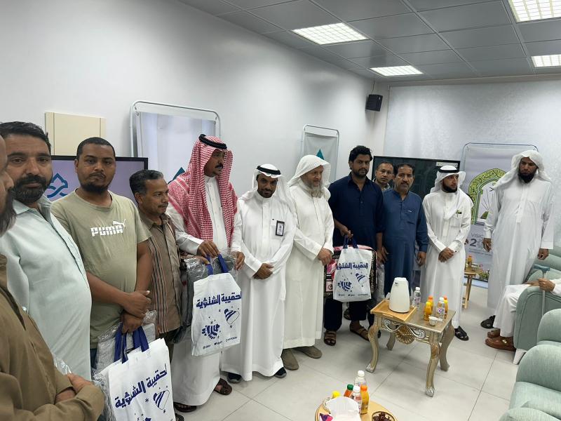 دشن محافظ محافظة فيفاء الأستاذ / محمد بن حاسر حكمي وبحضور رئيس جمعية الدعوة بفيفاء الشيخ / يحيى بن حسن الفيفي ومدير قسم الجاليات الأستاذ / يحيى بن إبراهيم الفيفي الحقيبة الشتوية السنوية لقسم الجاليات بجمعية الدعوة بفيفاء اليوم الاثنين الموافق : 13/5/1445هـ الذي يأتي دعماً من منصة إحسان الخيرية لعدد 1000 حقيبة مكونة من (بطانية + جاكيت + بلوفر + شال + قبعة + شراب + قفاز) .