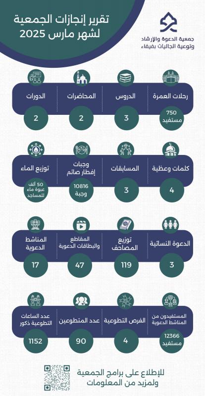انجازات جمعية الدعوة لشهر مارس 2025م