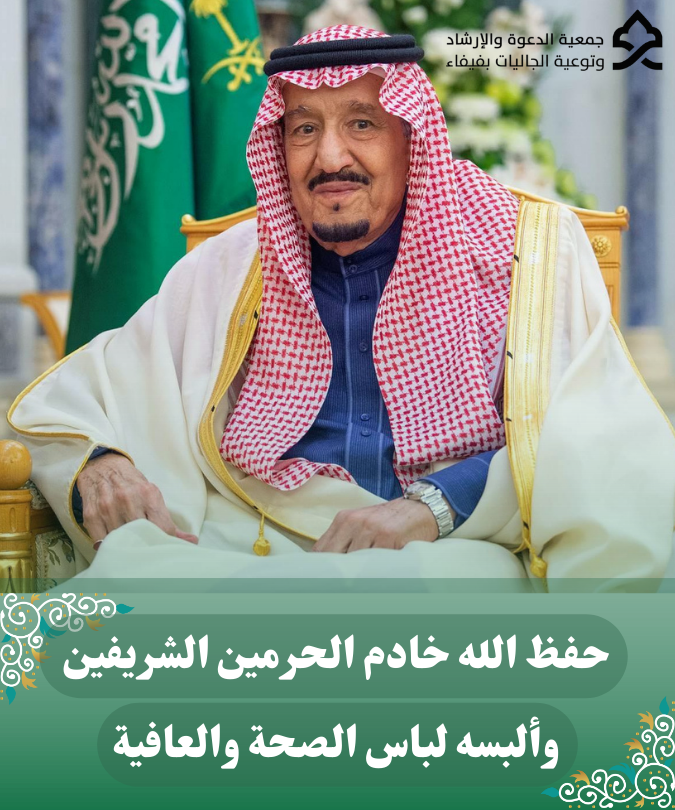 يتقدم رئيس وأعضاء مجلس إدارة جمعية الدعوة والإرشاد وتوعية الجاليات بفيفاء وكافة منسوبيها بأسمى آيات التهاني والتبريكات