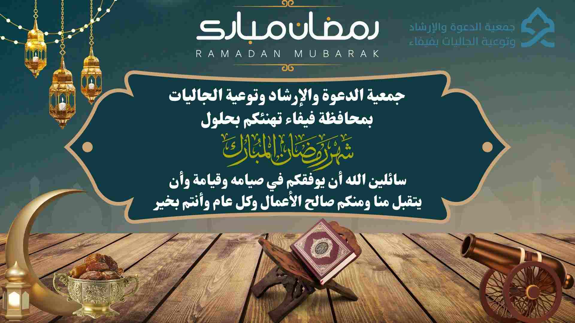 جمعية الدعوة والإرشاد وتوعية الجاليات  بمحافظة فيفاء تهنئكم بحلول شهر رمضان المبارك